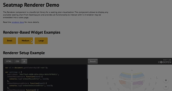 Rather than building a seating chart renderer from scratch, you can integrate Seatmap.pro’s JavaScript SDK into your ticketing platform. The renderer handles Canvas/WebGL rendering, seat selection, real-time availability, and responsive layout out of the box. See the Playground to test it live, or read the SDK documentation to get started.